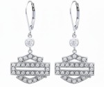 Harley-Davidson® Bling Outline Bar & Shield Dangle Earrings Sterling Silver HDE0385 Ride in style with the Harley-Davidson® Bling Outline Bar & Shield Dangle Earrings. Crafted from sterling silver, these dangles feature a sleek open Outline Bar & Shield design adorned with sparkling crystals. The secure lever-back closure ensures they stay in place, whether on the highway or out on the town. Pair with the matching Harley-Davidson® necklace and ring for a complete biker-inspired look. Product Details: