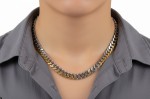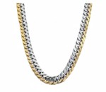 Two tone Stainless and Gold Tone Curb Link Men's Necklace FREE SHIPPING 14mm wide curb link necklace has tight links and beveled edges, giving it a clean and smooth feel and look. Made of 316L Stainless Steel, this Curb Link chain is strong. It features gold plating on one side and includes a designer lobster claw clasp. FREE SHIPPING Details: - SKU: CH18