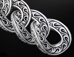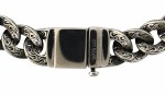 12mm Tattoo Curb Link Chain Stainless Steel This striking statement piece showcases a 1/2 inch (12mm) wide Tattoo Curb Link Chain made from high-quality, durable 316L stainless steel. Its distinctive tattoo-inspired design is etched into the chain and enhanced with black oxidation to bring out every detail. Offered in three different lengths.