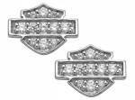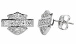 Harley-Davidson® Ladies Bling CZ Bar & Shield Logo Post Earrings Sterling Silver HDE0228 Add bold sparkle to your biker style with these Harley-Davidson® CZ Bar & Shield Logo post earrings. Crafted from genuine .925 sterling silver, these medium-size 10 x 14mm logo earrings feature brilliant CZ (cubic zirconia) stones for eye-catching shine. Perfect for everyday wear, rallies, or dressing up your Harley look, these earrings combine classic motorcycle attitude with elegant bling. Product Details:
