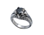 Ladies Black Solitaire Skull Ring Lady Biker Stainless Steel Sizes 5 - 10 This Ladies' Solitaire Skull Ring Boasts a Sleek, Rebellious Flair, Showcasing a 1ct Black CZ Guarded by Four Tiny Skull Bouncers—one on each side—Keeping Things In Check. Crafted from Tough Stainless Steel, it’s the Ultimate Bling for Lady Bikers who like their Accessories as Bold as their Rides.