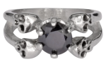 Ladies Four Skull Black Ice Stone Ring Stainless Steel Sizes 5-10 Ladies stainless steel designer ring. Having four skulls on the outside of a 7mm black stone. Tapered shank for that everyday wear.
