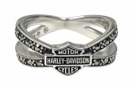 Ladies Harley-Davidson® Marcasite Bling Crisscross B&S Logo Ring Sterling Silver HRD0385 Add sparkle to your biker style with this Ladies Harley-Davidson® Marcasite Crisscross B&S Logo Ring crafted in premium sterling silver. Featuring double crisscross bands adorned with shimmering marcasite stones, the design elegantly meets at the back and the top, highlighted by a clean Outline bar and shield logo. Perfect for Harley® fans who love subtle bling with iconic style. Product Details: