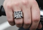 Men's Black Iron Cross Ring Biker Ring Heavy-Duty Stainless-Steel Sizes 9-16 Black Iron Cross Ring with 3 smaller Iron Crosses on each side. High Polished Stainless Steel with Black Accents to Show Off the Good Stuff! The Ring measures 18 x 18mm across the top then the band tapers down to 3.8mm so it Feels Nice on the Finger. With a Solid inside to Ensure that Nice Fit and Feel. A True Old School Biker Ring.
