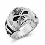 Men's Harley-Davidson ® Willie G Skull Bar & Shield Logo Ring Stainless Steel HSR0004 Make a statement with the Men's Harley-Davidson® Willie G Skull Bar & Shield Logo Ring in durable stainless steel. This bold ring features the iconic Willie G skull front and center, with a Bar & Shield® logo on the forehead with the Bold Lettering “Harley” and “Davidson” engraved along each side of the band. The laser-cut design with black accents adds depth and sharp detail, while the solid interior and tapered shank ensure comfortable all-day wear. Perfect for Harley® fans who want edgy style and everyday durability. Product Details: