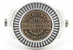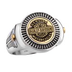 Men's Harley-Davidson® Round Coin Top Bar & Shield Logo Ring Two-Tone Stainless Steel HSR0045 This Harley-Davidson® men’s biker ring features a standout round coin-style top (slightly larger than a dime) with a striking two-tone stainless steel and brass look finish. The face showcases the iconic Bar & Shield logo surrounded by the words “Genuine Motorcycles” for classic H-D attitude. Detailed craftsmanship continues down the band with an H-D engine outline on each side of the shank, accented by a brass dot for added edge. A powerful statement ring designed for true Harley riders. Two-tone steel and brass styling. Bold, rugged, and built for the ride. Don’t forget to check out the matching pendant to complete the set. (MOD130/HSN0050) Product Details: