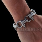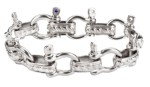 Men's Large Boat Shackle Bracelet 20mm Stainless Steel This Hefty Large Boat Shackle Bracelet, Forged from Tough-as-Nails 316L Stainless Steel, is the Wrist's Answer to a Muscle Car. At 20mm wide its Nautical Shackle Flair, it's Perfect for Bikers, Sailors, and Anyone whose Lifestyle Involves More Grit than Glitter. *Each link can be unscrewed to open or remove it; the primary method is to use the long bar that unsnaps, which is located near the small blue stone.