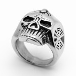 Men's Spider Skull Ring Biker Jewelry Stainless Steel Sizes 9 - 16 This Daring Ring Features a Fearless Spider Chilling on a Skull, surrounded by Intricate Web Designs on all sides. Made from Shiny, High-Polished 316L Stainless Steel. Standing 1" tall, weighing in at 27 grams, and Boasting a Solid Interior, it’s the Ultimate Tough-Guy Accessory for Men’s Biker Fashion.
