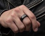 Unisex Black Skull & Crossbones Spinner Ring Stainless Steel Wedding Band Sizes 5 - 16 The White Skull and Crossbones Design Proudly Wraps around the Black Spinner Band, delivering a Rebellious Flair to your Finger. Our Black Stainless Steel Spinner Ring is Perfect for Both Men and Women, whether you're going for a Matching Set or a Wedding Band with a Twist. The rings width varies slightly with the finger size, from (sz5)6.5mm to 7.5mm (sz16),