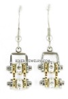 Chrome and Gold Mini Ladies Stainless Steel Bling Motorcycle Bracelet A stainless steel ladies' bike chain bracelet, featuring a silver exterior and a gold interior, complemented by a white center adorned with sparkling spinning crystals. This mini edition measures 8mm in width.