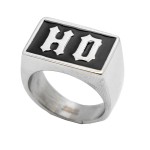 "HD" Signet Ring Biker Stainless Steel Heavy Metal Jewelry Sizes 9 - 16 This Men's "HD" Ring is the Ultimate Accessory for Motorcycle Enthusiasts and Fans of the Biker Lifestyle. A minimalist Masterpiece, it’s made from 316L High-Polished Stainless Steel with a Black Enameled Background that makes the Laser-Cut "HD" Letters Stand Out like a Rebel in a Traffic Jam. The Smooth, Tapered sides and Solid Interior give it the Comfort of your Favorite Leather Jacket. Packed with Biker Attitude and Harley Davidson Charm, this "HD" Ring is a Must-Have for Anyone who wants their Jewelry to Ride in the Fast Lane..