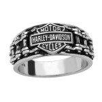 Harley-Davidson® B&S Logo Bike Chain Ring Men's Sterling Silver HDR0260 This Men’s Harley-Davidson® Sterling Silver Bike Chain Ring features a detailed bike chain design with the iconic Bar & Shield® logo centered front with a low on the finger profile for a clean, powerful look. Designed with a tapered shank and smooth inner band, this ring offers a comfortable low-profile fit—perfect for daily wear whether you’re riding or off the road. Product Details: