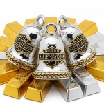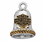 Harley Davidson® Hammered B&S Logo Ride Bell Two-ToneHRB080 Ride in style with this Harley-Davidson® Hammered Bar & Shield Ride Bell. Featuring a unique hammered finish, the iconic Bar & Shield logo appears on both the front and back in gold-tone, with a matching gold-tone weave design around the bottom lip. This double-sided ride bell combines classic Harley tradition with bold, eye-catching detail. Perfect for motorcycle enthusiasts, collectors, or as a Harley gift. Product Features:
