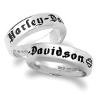Harley-Davidson® Ladies Engraved Comfort Fit Sterling Silver Biker Wedding Band HDR0217 Celebrate your love with a touch of Harley-Davidson® style with the Ladies Engraved Comfort Fit Biker Wedding Band. This 5.5mm sterling silver ring features classic Old English engraving "Harley-Davidson" with subtle black antiquing, set against a high-polished finish for a sleek, timeless look. Designed with a comfort fit, this women’s motorcycle wedding band is perfect for everyday wear. Pair it with the matching men’s biker wedding band (MOD65) to ride through life together in true Harley style. Product Details: