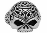 Harley-Davidson® Ladies Filigree Willie G Skull B&S Logo Ring Sterling Silver HDR0314 Make a bold statement with this officially licensed Harley-Davidson® Ladies Filigree Willie G Skull Ring. Designed for women who love edgy, feminine biker style, this sterling silver ring features a beautifully detailed, sugar skull–inspired Harley-Davidson Willie G Skull design. The dimensional skull is intricately engraved and etched, with a subtle Outline Bar & Shield logo centered on the forehead. Elegant filigree scrollwork surrounds the design, adding a touch of refined detail while keeping that classic Harley attitude. Inside, the band offers a smooth, comfortable fit with additional hidden design elements for a premium finish. Perfect for everyday wear or as a standout accessory for rides and rallies. Product Details: