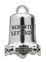 Harley Davidson® Screw It, Lets Ride B&S Logos Ride Bell HRB002 Hit the road with attitude using the Harley-Davidson® “Screw It, Let’s Ride” Ride Bell. Featuring bold lettering across the front, this motorcycle ride bell is detailed with classic Bar & Shield logos and skull accents wrapping around the bottom edge. It’s the perfect accessory for riders who live for the open road. Product Details: