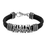 Harley Davidson® Western Style H-D Double Braided Leather Bracelet HSB0221 Ride in style with the Harley Davidson® Western Style Double Braided Leather Bracelet. Featuring a bold, sculpted western-style script Harley-Davidson® logo, this bracelet combines rugged double braided black leather with a sleek stainless steel Lettering and a lobster claw clasp for a secure fit. Perfect for bikers and motorcycle enthusiasts looking for a statement accessory. Product Details: