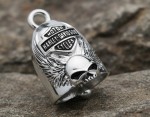 Harley Davidson® Winged Skull B&S Logo Ride Bell HRB038Bring old school biker attitude to your ride. The Harley-Davidson® Winged Skull Ride Bell features flaming wings rising around the iconic Willie G® Skull, positioned just below the detailed Bar & Shield logo. This bold design delivers classic motorcycle style with powerful symbolism. Ride Bells are traditionally gifted for good luck and protection, helping guard riders from road gremlins and bad luck. This winged skull design makes a perfect gift for any Harley rider. Product Details: