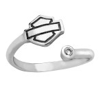 Harley-Davidson® Wrap Around B&S Logo Toe Ring with Crystal Stone in Sterling Silver HDT0011 Add a touch of sparkle to your biker style with this beautiful Harley-Davidson® wrap around toe ring. Crafted in genuine sterling silver, this sleek open-band design features a single Bar & Shield® outline logo on one end with a brilliant clear crystal accent at the other end. The wrap-around style gives it a modern, feminine look while still delivering that bold Harley-Davidson® attitude. Adjustable for a comfortable fit, it’s perfect for sandals, beach days, rallies, or everyday wear. Simple. Stylish. Unmistakably Harley®. Product Details: