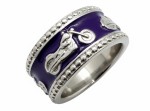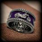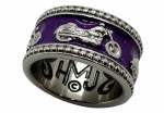 Ladies Purple Motorcycle Bike Ring Lady Biker Two-Tone Stainless Steel Sizes 6 - 9 This Two-Tone Motorcycle Bike Ring, made from Purple-Enameled Stainless Steel, Features Tiny Motorcycles Cruising along a Recessed Purple Highway that Wraps Around the Entire Band—Perfect for those who Want their Jewelry to Ride in Style Right Alongside Them.