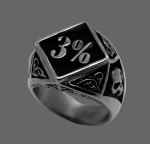 Men's "3%" Signet Ring Biker Stainless Steel Ring Sizes 9-15 This “3%” Signet Ring Boasts Raised Lettering in Sleek Black Inlaid Enamel atop a Gleaming Stainless Steel Ring, with a Grinning Skull Popping Up on each side for Extra Intimidation. A Three Percenter is Someone who Treats the Second Amendment like it’s Carved in Stone—Preferably with a Chisel, not a Pen.