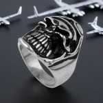 Men's Aviator Skull Ring Biker Stainless Steel Sizes 9-15 This Super Tough Stainless-Steel Aviator Skull Ring, standing at a mighty 1¼ inches tall, Rocks Biker Goggles perched on a Leather Cap. It's the Ultimate Motorcyclist Ring with a Timeless Old-School Charm that'll Make You Feel like the King of the Road! FREE SHIPPING