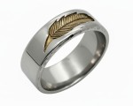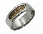 Men's Feather Ring Tribal Design Wedding Band Stainless Steel Clean, bold, and meaningful—this men’s wedding band features a sleek stainless-steel design accented with a detailed gold-plated feather inlay. The contrast between the high-polish steel and the warm gold tone creates a modern look with a timeless edge. FREE SHIPPING Details: - SKU: SR224