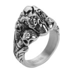 Men's Skull Family Ring Biker Multiple Skulls Ring Stainless Steel sizes 9 - 15 Our Skull Family Ring is Delightfully Sinister, Featuring a Gang of Skulls stuck in Purgatory, wrapping halfway around your finger like they're Clinging for Dear Afterlife. The Central Skull, the "Boss of the Bunch", is surrounded by its smaller, Rebellious "Family" Skulls, all Meticulously crafted from top-tier 316L Stainless Steel. Built tough enough to survive a Zombie Apocalypse—or just your next Wild Ride. Heavy Metal Jewelry.