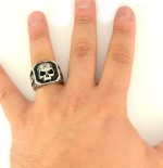 Men's Square Skull Ring with Eagle Sizes 9 - 16 20mm square top men's skull ring with a black background, so the skull shows off, add an eagle design on each side and you have one super good looking strong stainless steel men's ring.
