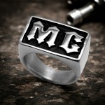 Men's Stainless Steel Motorcycle Club MC Biker Ring Sizes 9-16 Show them who you are with this true Men's Stainless Steel Biker Ring, made from strong clean 316L stainless steel, measuring 23 x 14mm. It's a heavy and solid ring with a tapered shank for added comfort. The MC stands out great with black enameling.