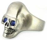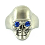 Skull Ring Blue Eyes | Solid Stainless Steel | Men's Biker Ring Stain Finish This Men’s Punisher Skull Ring Featuring a Bold Skull Design with Striking Black Eyes for that Classic Punisher Vibe. The High Polished Stainless-Steel gives it a Sharp, Standout Look that’s Perfect for Making a Statement.