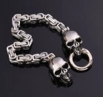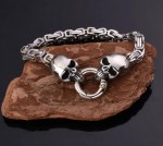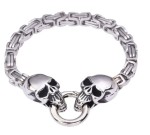 Stainless Steel Byzantine Dual Skull Biker Bracelet Stainless Steel Byzantine Dual Skull Biker Bracelet