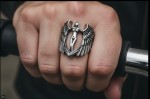 A Stunning Angel Lady with Wings Delicately Hugging each side of your Finger, as if Softly Saying, “Don’t Worry, I’ve Got This!” Measuring 1.25" (30mm) from Top to Bottom, sh. with Perfectly Placed Black Accents on Polished Stainless Steel... She Dominates your Finger and Stays Stylish and Cozy, even Earning a Nod of Approval from your Gloves. "Never Ride Faster than Your Angel can Fly"