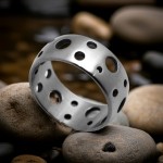 Holes All Over Ring Features a Die-Cut Design for a Fresh, Modern Look. Crafted with a Brushed Satin Stainless Steel Finish, it offers a Sleek Appearance on a 10mm wide band, Perfect for Both Men and Women. FREE SHIPPING