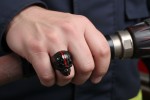 Unisex Red Line Black Skull Ring Firefighters Stainless Steel Sizes 8-16 This Classic Black Stainless Steel Skull Ring Sports a Bold Red Line for the Fearless Firefighters and the Patriotic American Flag Design with Tiny Laser-Cut Stars on Top. Guaranteed to Turn Heads, it’s the Firefighter Edition—Because Saving Lives Deserves Some Seriously Stylish Finger Armor. FREE SHIPPING