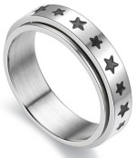 Unisex "Stars" Spinner Ring Wedding Band Stainless Steel Sizes 5-14 The "Stars" Spinner Ring Features a Central Row of Laser Cut Stars Enameled in Black on the Rotating Band, giving it a Stylish and Unique Touch. This 6.7mm wide Stars Spinner Ring, made from durable 316L Stainless Steel, is Perfect as a Wedding Band for Both Men and Women. Get a Matching Set. Biker Jewelry.