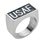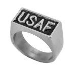Unisex "USAF" Signet Ring Air Force Military Ring Stainless Steel Sizes 9-15 This Unisex Military "USAF" Signet Air Force Ring is Perfect for Any Service Member whether Active-Duty or Veteran, Man or Woman. Featuring a Simple yet Bold Unisex Design crafted from Dazzling 316L Stainless Steel, it Boasts a Slick Rectangular design with Bold, Raised Laser-Cut "USAF" Lettering on a Black Enamel Inlay that Practically Shouts, "Salute Me!". This Durable "USAF" Signet Ring measures 11mm x 22mm across the top, making it the Perfect way to Shout, "I love My Unit and My Country!" Gift your Favorite Proud Service Member this Incredible "USAF" Ring and Watch them Beam with Patriotic Pride and maybe a little Extra Hand-Waving to Show It Off. FREE SHIPPING