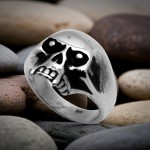 Unisex Vampire Fang Skull Ring Biker Jewelry Stainless Steel Sizes 7 - 16 This Slick Vampire Skull Ring Flaunts a Glossy Finish, Sharp Fangs, and Moody Dark Eyes, Poised to Bite Down on your Fashion Sense! This Vampire Skull Ring is about 22 x 18mm on Top with a 5mm Shank. A Great Unisex Ring in Size & Style with sizes for both Men & Women. Biker Jewelry's 316L Stainless Steel