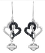 Women's Harley-Davidson® Ladies Sterling Silver Black & White Heart Earrings HDE0578 Turn heads on the road or off with these stunning women’s Harley-Davidson® earrings. Crafted from high-quality sterling silver, each earring features a black ice crystal heart paired with a high-polish interlocking heart, plus an open bar with the iconic Harley-Davidson® shield logo dangling below. Designed for style, sparkle, and biker attitude, these handmade earrings by Mod Jewelry® are perfect for Harley enthusiasts. Product Features: